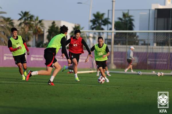 선발 라인업 선수 명단은 박용우, 황인범, 손흥민, 이재성, 황희찬, 정승현, 이강인, 김영권, 조현우, 설영우, 김태환 선수입니다. 손흥민 선수가 최전방에 배치되었고 경고 누적으로 이번 경기에 참여하지 못하는 김민재 선수 자리는 정승현 선수가 배치되었습니다.
