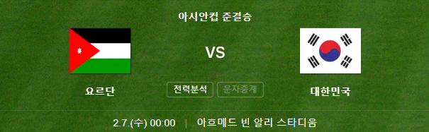 대한민국과 요르단의 준결승이 아흐메드 빈 알리 스타디움에서 2월 7일 오전 12시에 열립니다.